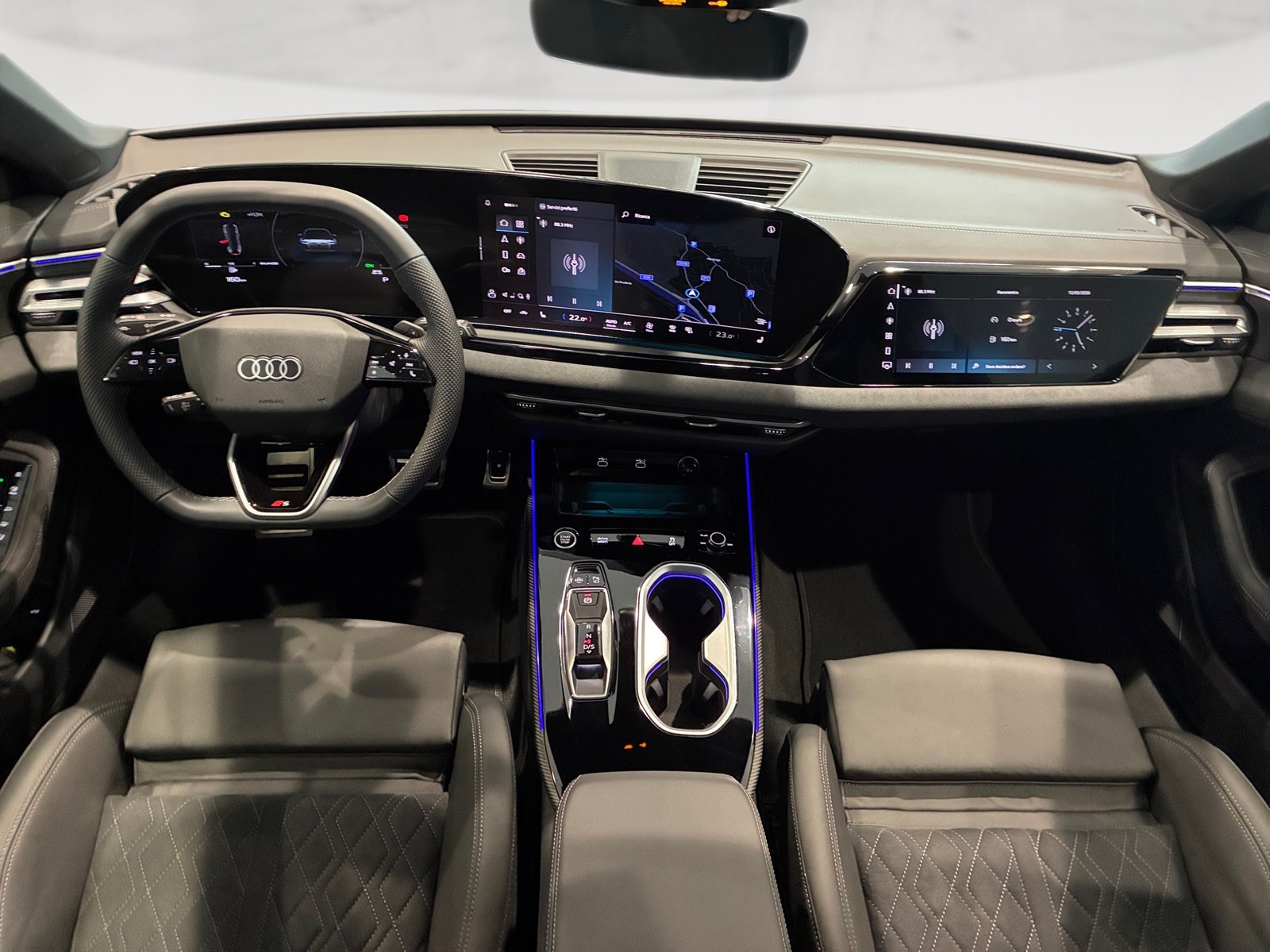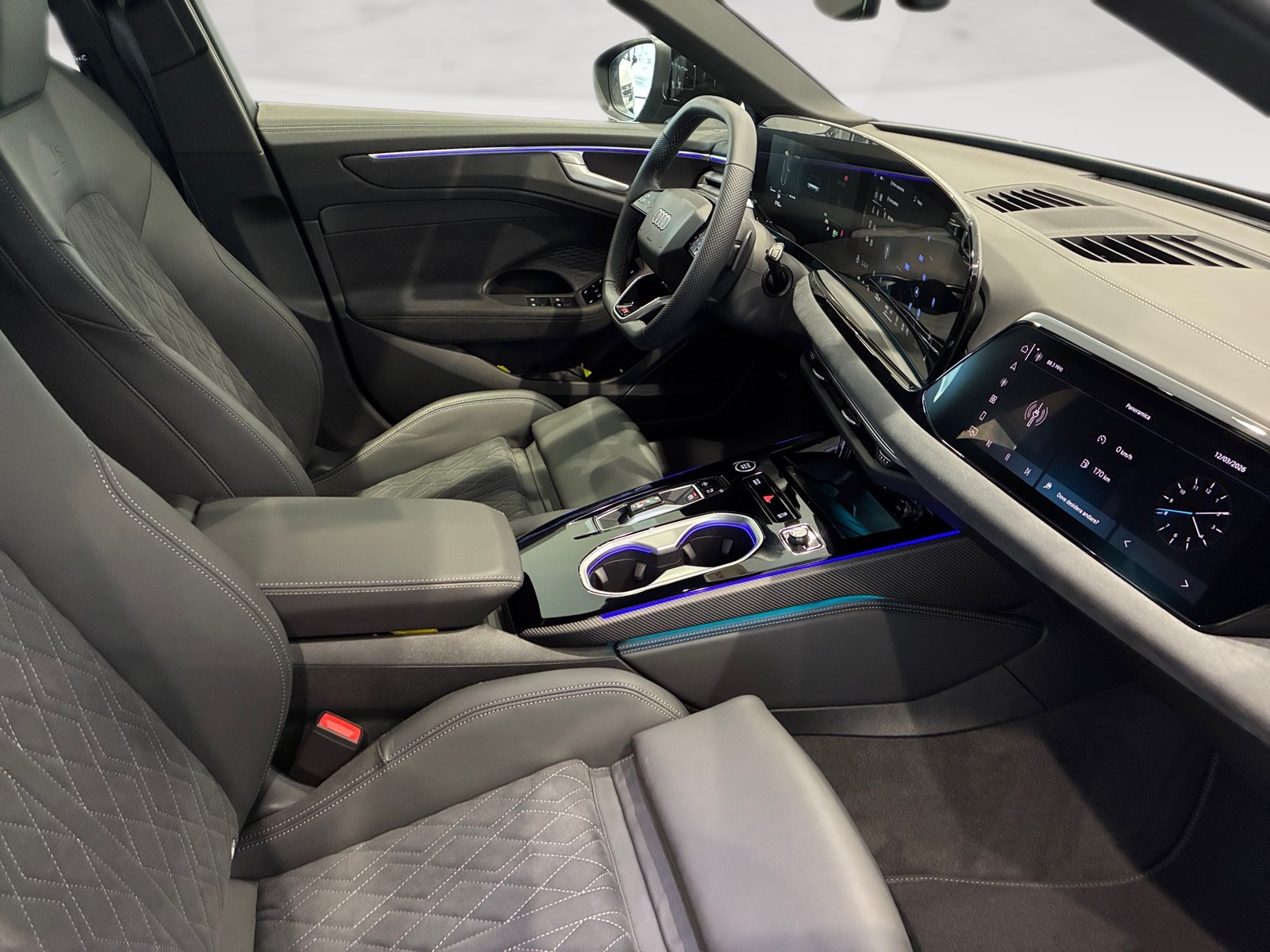 Combinazione microfibra dinamica/pelle con trapuntatura a rombi ed emblema s