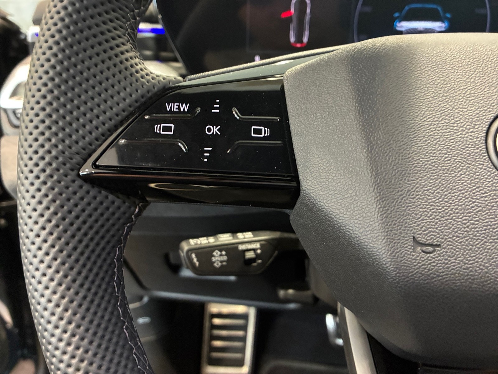 Volante sportivo multifunzionale in pelle a 3 razze appiattito nella